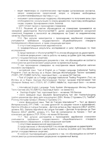 11.6.  При  допуске  магистрантов  к  прохождению  зарубежной  стажировки