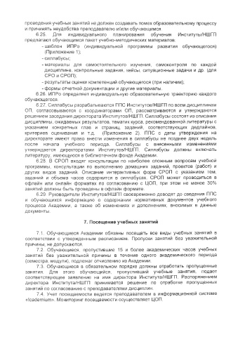 6.29.  Руководители  Институтов/НШГП  своевременно доводят до  сведения  ППС