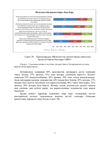 орташа, 28% жоғары баға берген. Жалпы, халық мемлекеттік қызмет сапасы