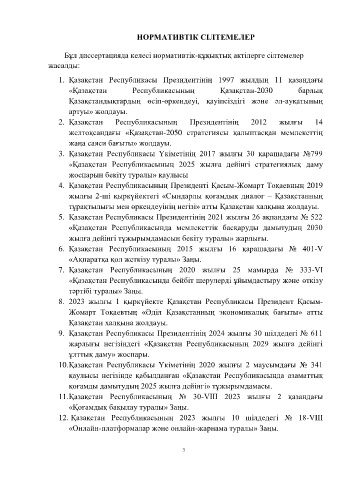 Бұл диссертацияда келесі нормативтік-құқықтық актілерге сілтемелер