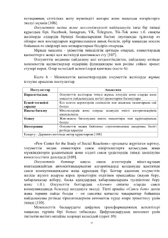 Кесте 6 – Мемлекеттік қызметкерлердің әлеуметтік желілерде жұмыс