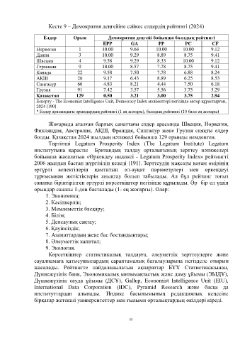 Кесте 9 – Демократия деңгейіне сәйкес елдердің рейтингі (2024)