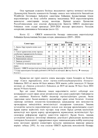 Кесте 12 - GRICS мемлекеттік басқару сапасының көрсеткіштері