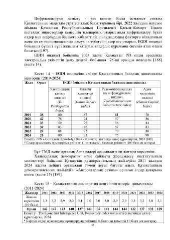 Кесте 14 – EGDI индексіне сәйкес Қазақстанның баллдық динамикасы