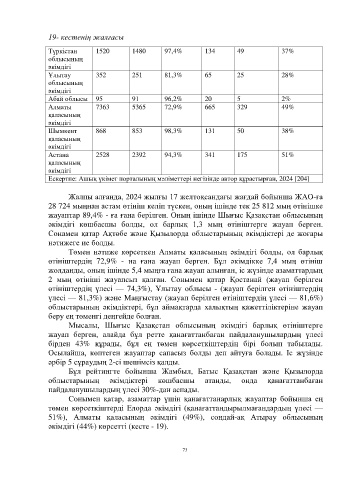 өтініштердің үлесі — 74,3%), Ұлытау облысы - (жауап берілген өтініштердің