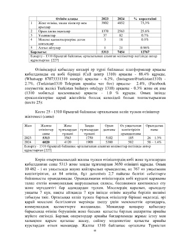 Кесте 25 - 1310 бірыңғай байланыс орталығына келіп түскен өтініштер