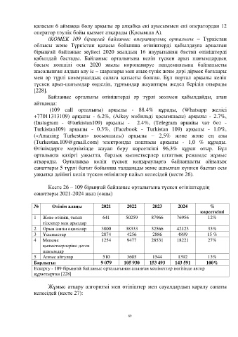 (109 call орталығы) арқылы - 88.4% құрады, (Whatsapp желісі