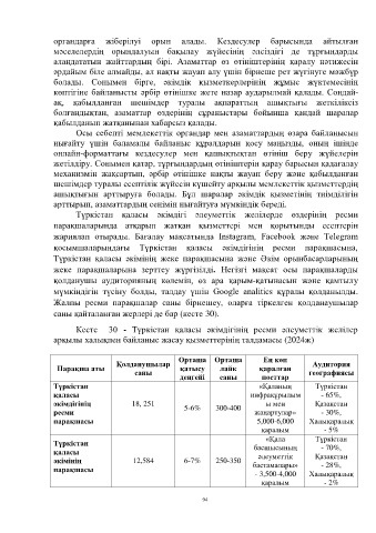 Кесте 30 - Түркістан қаласы әкімдігінің ресми әлеуметтік желілер