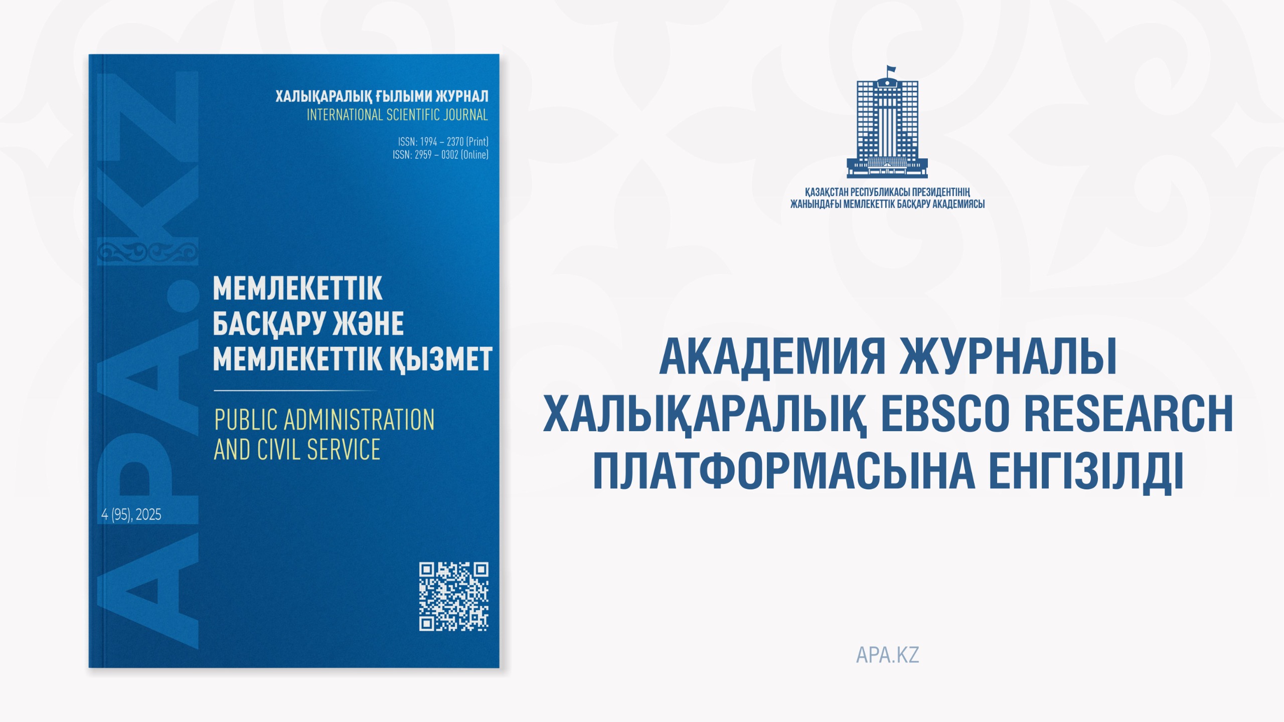 Журналдың EBSCO базасына енгізілуі – оның ғылыми жарияланым сапасы, редакциялық саясат пен рецензиялау үдерісінің халықаралық талаптарға толық сәйкес келетінін білдіреді. Сонымен қатар бұл шешім мемлекеттік басқару және мемлекеттік қызмет саласындағы зерттеулердің халықаралық аудиторияға кеңінен қолжетімді болуына, журналдың танымалдылығы мен ғылыми ықпалының артуына мүмкіндік береді.