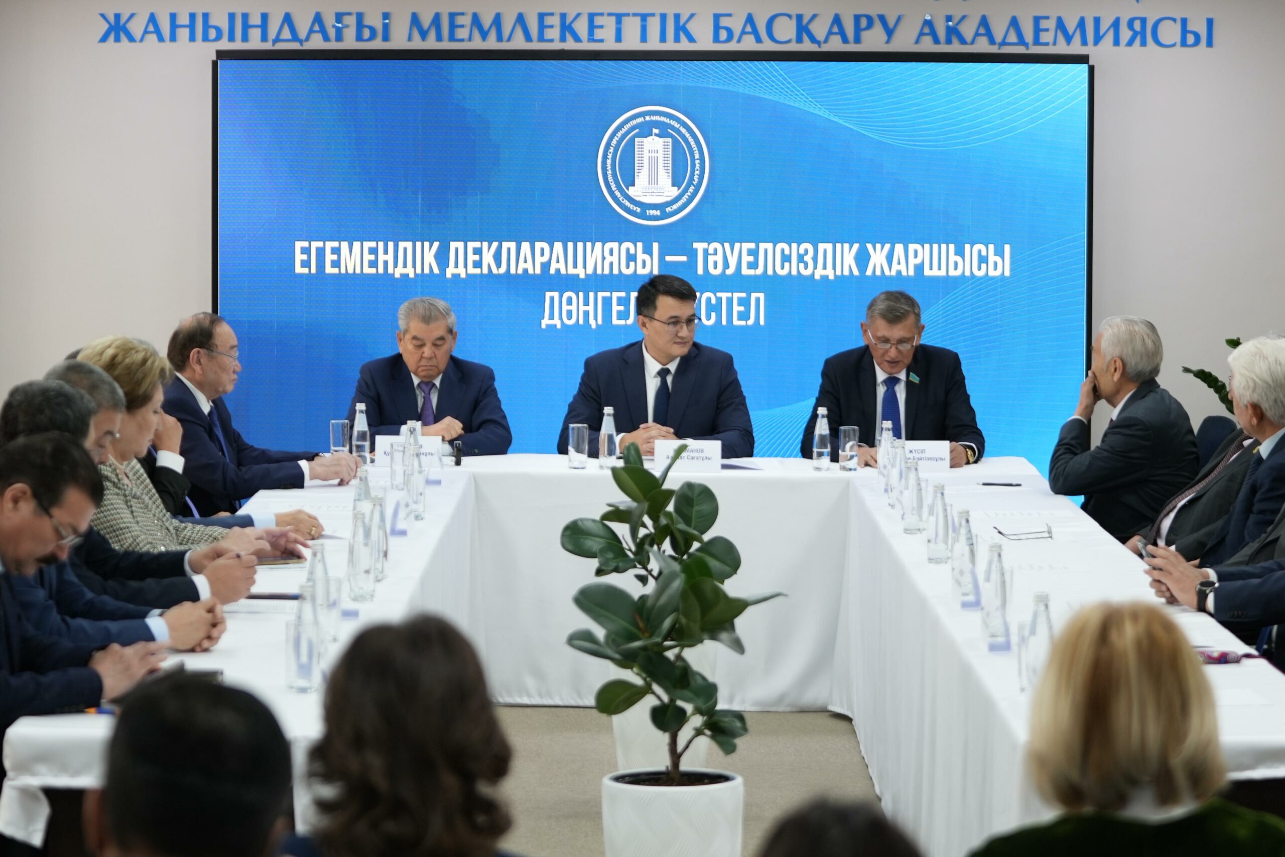 Мемлекеттік басқару академиясында Республика күні қарсаңында және «Қазақстанның мемлекеттік егемендігі туралы декларацияның» 35 жылдығына орай «Егемендік декларациясы – Тәуелсіздік жаршысы» атты дөңгелек үстел өтті. Шараға Мемлекеттік басқару академиясының ректоры Азамат Сағатұлы Жолманов модераторлық етті.