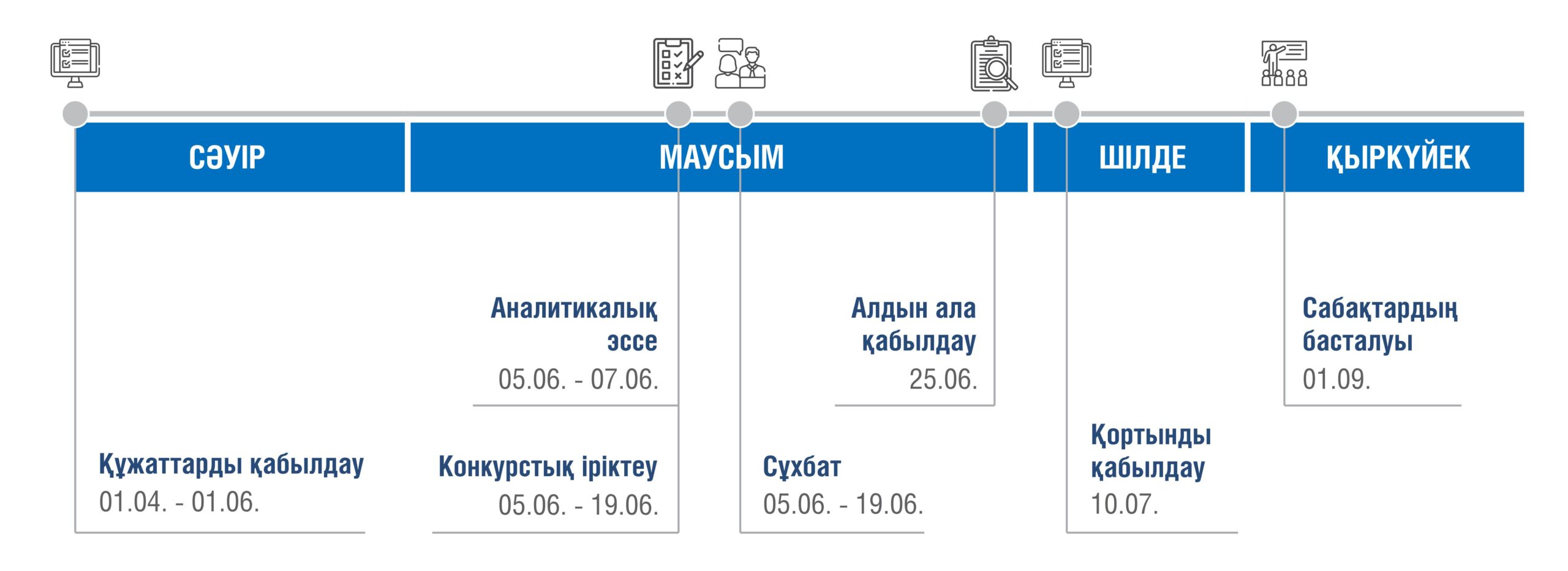 MPP, MIR – IELTS кемінде 4.0 балл, TOEFL IBT кемінде 29 балл немесе TOEFL ITP (LEVEL 1) кемінде 343 балл, TOEIC кемінде 405 балл, Duolingo English Test кемінде 60 балл; DIR, DPA, DE, DDPA – IELTS кемінде 5.5 балл, TOEFL IBT кемінде 46 балл, TOEFL ITP (LEVEL 1) кемінде 417 балл немесе TOEIC кемінде 550 балл, Duolingo English Test кемінде 95 балл.