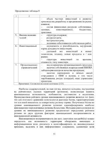 региона по двум группам факторов: инновационной восприимчивости и