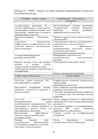 Таблица 12 – SWOT - анализ состояния развития инновационной экосистемы