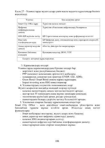 Кесте 27 – Ұсыныстарды жүзеге асыру үшін нақты жауапты құрылымдар бөлініп