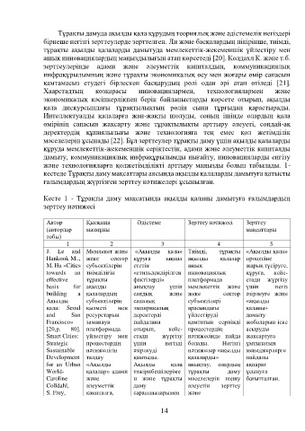 Кесте  1  -  Тұрақты  даму  мақсатында  ақылды  қаланы  дамытуға  ғалымдардың