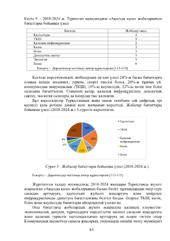 Кестеде көрсетілгендей, жобалардың ең көп үлесі 24%-ы басқа бағыттарға