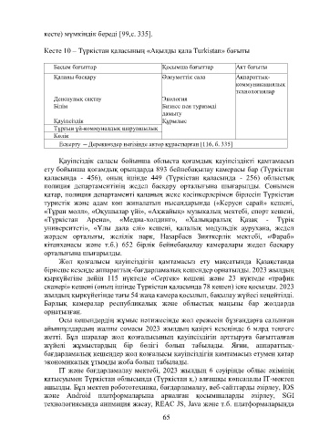 Кесте 10 – Түркістан қаласының «Ақылды қала Turkistan» бағыты