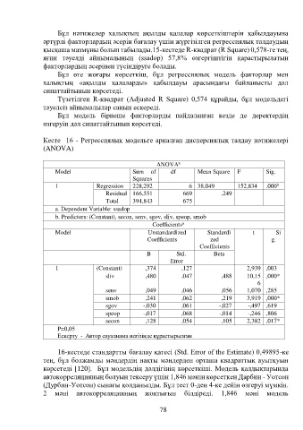 Кесте 16 - Регрессиялық модельге арналған дисперсиялық талдау нәтижелері