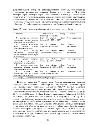 Кесте 17 - Ақылды қаланы қабылдауға факторлардың әсерін бағалау