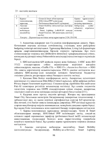 сәйкестендіріліп, мысалы, «Traffic CO₂ → SDG 13», «Access to e-Services → SDG