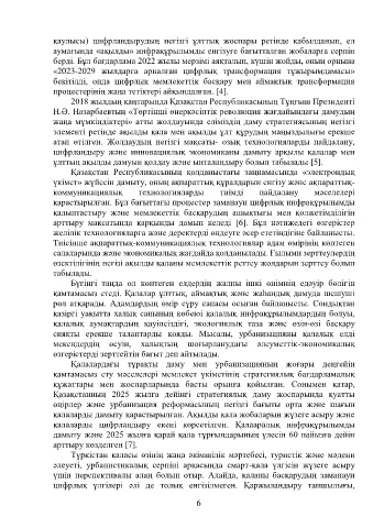 қалаларды цифрландыру екені көрсетілген. Қалааралық инфрақұрылымды
