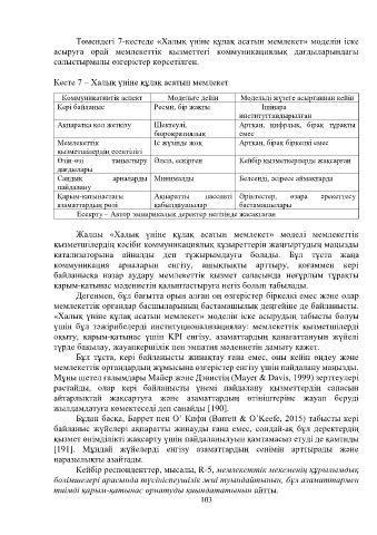 Төмендегі 7-кестеде «Халық үніне құлақ асатын мемлекет» моделін іске